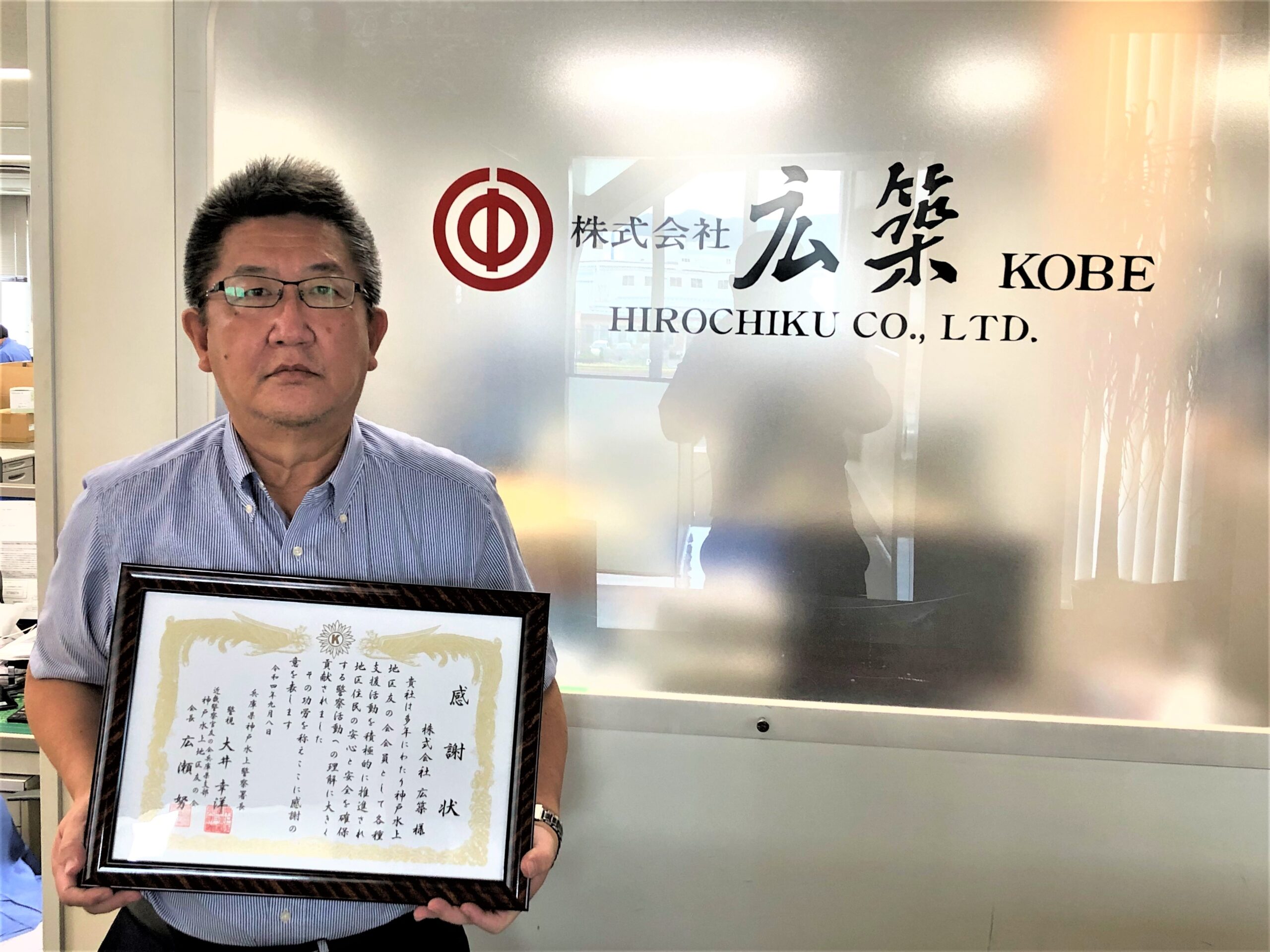 小嶋前理事長 近畿管区警察局長から感謝状授与